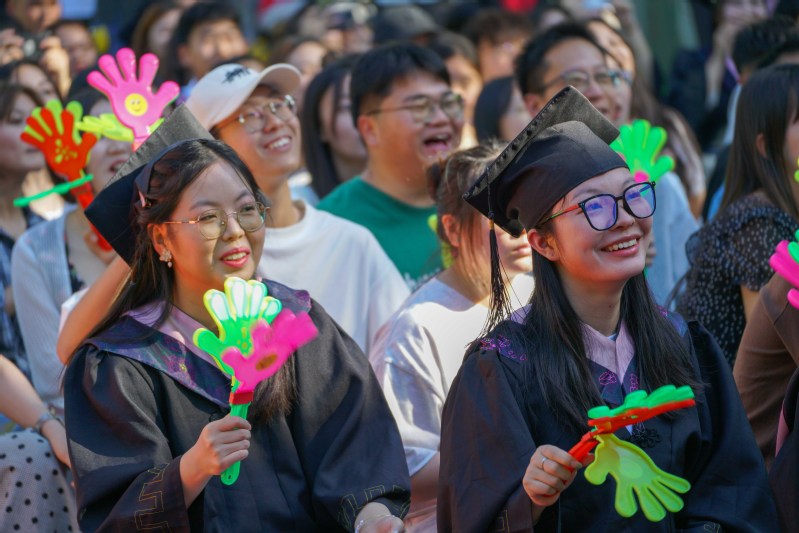 毕业典礼后,全体与会人员共同观看了“踔厉奋发 筑梦未来”的欢送毕业生演出。