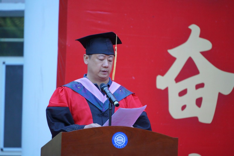 伴随着雄壮的国歌,毕业典礼拉开帷幕。“每一段值得铭记的青春,始终是与祖国同向而行的青春,是挥洒汗水铸就的青春,是依靠学习走向未来的青春,是在平凡中孕育伟大的青春。”院长余国新深情寄语全体毕业生,希望同学们以奋斗之姿勇挑国家民族重任,与伟大的祖国一起奋斗、一起成长,为实现中华民族伟大复兴的中国梦而奋斗。希望同学们将“明德笃志 励学竞业”的校训精神内化于心、外化于行,在攀峰登高中奋勇前行,在攻坚克难中锤炼意志,在奋楫争先中成就自我。希望同学们投身“苦”中勤奋历练,坚定“敢吃苦”的信念;勇挑重担艰苦奋斗,锻造“能吃苦”的意志;履践致远磨砺能力,练就“战胜苦”的本领,让青春之花绽放在祖国和人民最需要的地方。